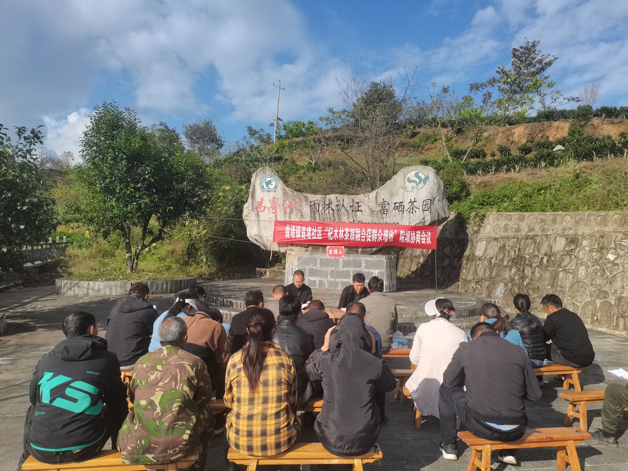 翁堵镇协商议事会议召集人介绍说:“要将杞木林茶园打造成为全镇茶园管理的标杆,围绕‘富硒’茶叶品牌做大文章,召开‘院坝协商’会议,统一群众思想,大家齐抓共管,打造茶旅融合发展的新样本。”
