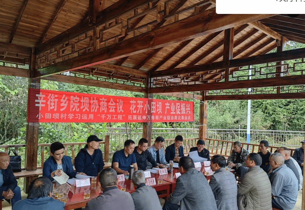 近日,辛街乡政协联络组在小田坝村组织召开以“学习运用‘千万工程’,拓展延伸万寿菊产业链”为主题的院坝协商议事会。