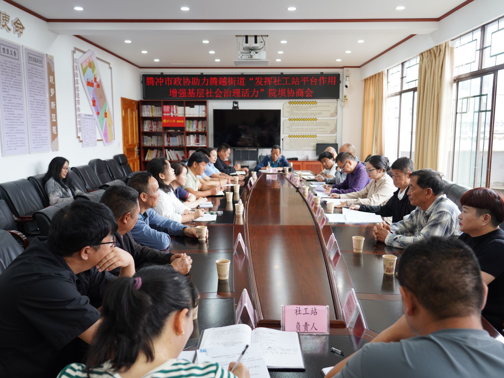近日,腾冲市政协在腾越街道文星社区组织召开“发挥社工站平台作用 增强基层社会治理活力”院坝协商议事会。市政协委员、街道及社区干部、司法所、综治中心、警务室代表、法治副村长、睦邻社会工作服务中心(以下简称“睦邻中心”)负责人、经营户及房东代表等多元主体参与协商,共商社区治理“良方”。