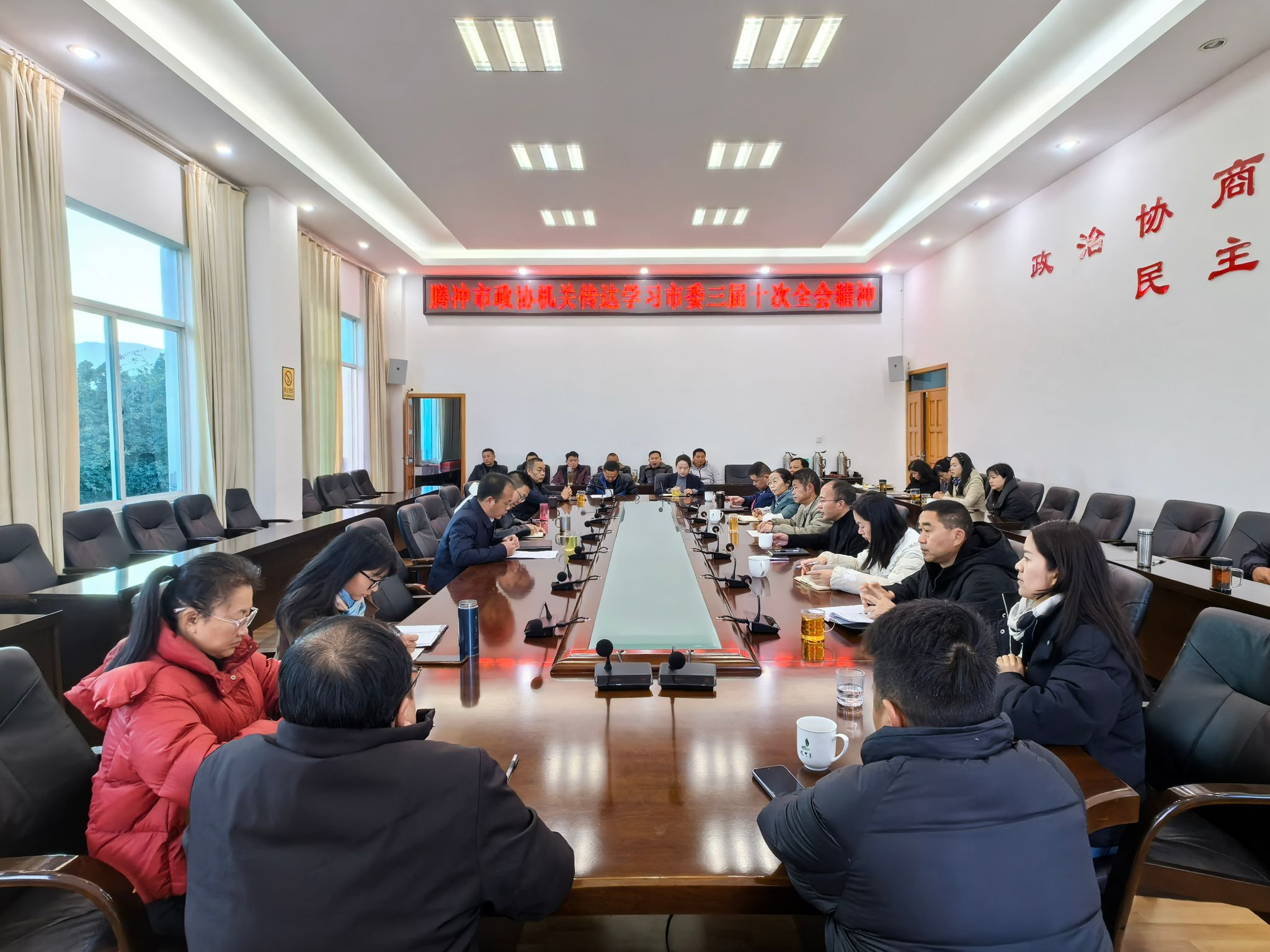 近日,腾冲市政协召开专题会议,深入学习贯彻腾冲市委三届十次全会精神。市政协机关全体干部职工参加会议。