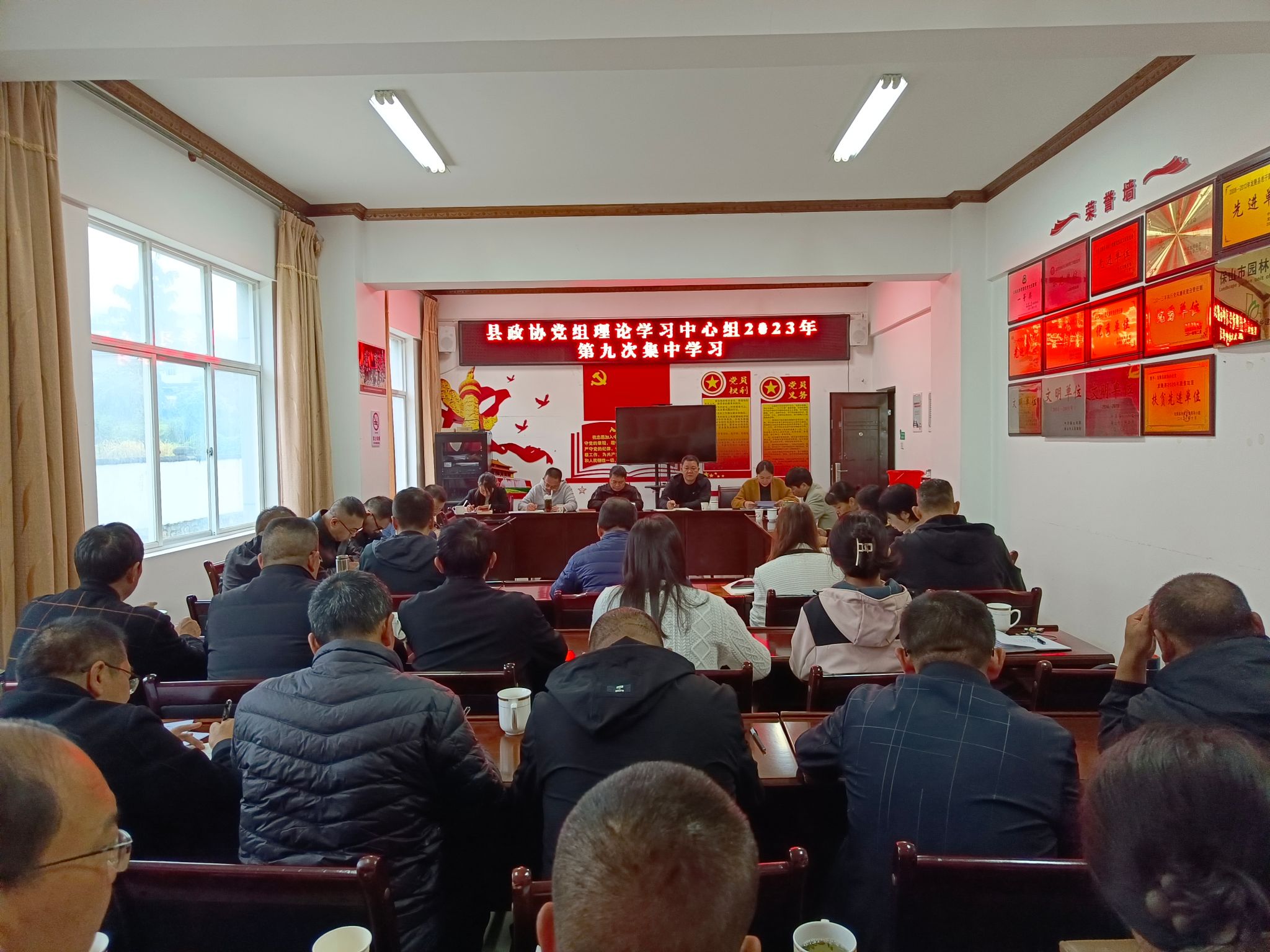 11月20日,龙陵县政协围绕“树立和践行正确政绩观”这一主题举行党组理论学习中心组第九次集中学习。赵兴灿作中心发言,张有林作专题发言,3名同志作交流发言。学习由党组书记、主席赵兴灿主持。