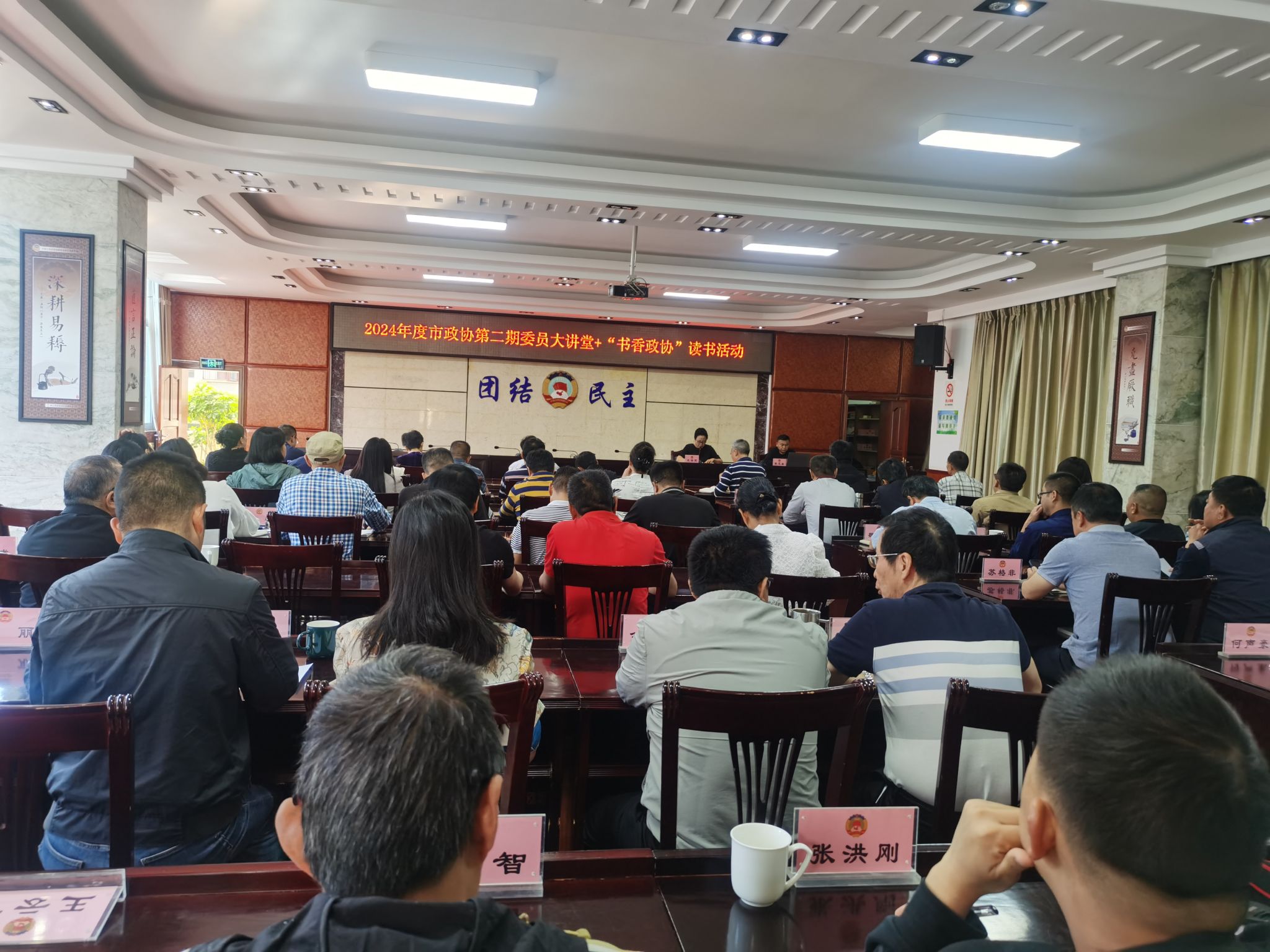 4月29日,市政协2024年第二期委员大讲堂+“书香政协”读书活动在市政协二楼会议室举办,市政协干部职工、各民主党派、市工商联及部分政协委员共60余人参加。