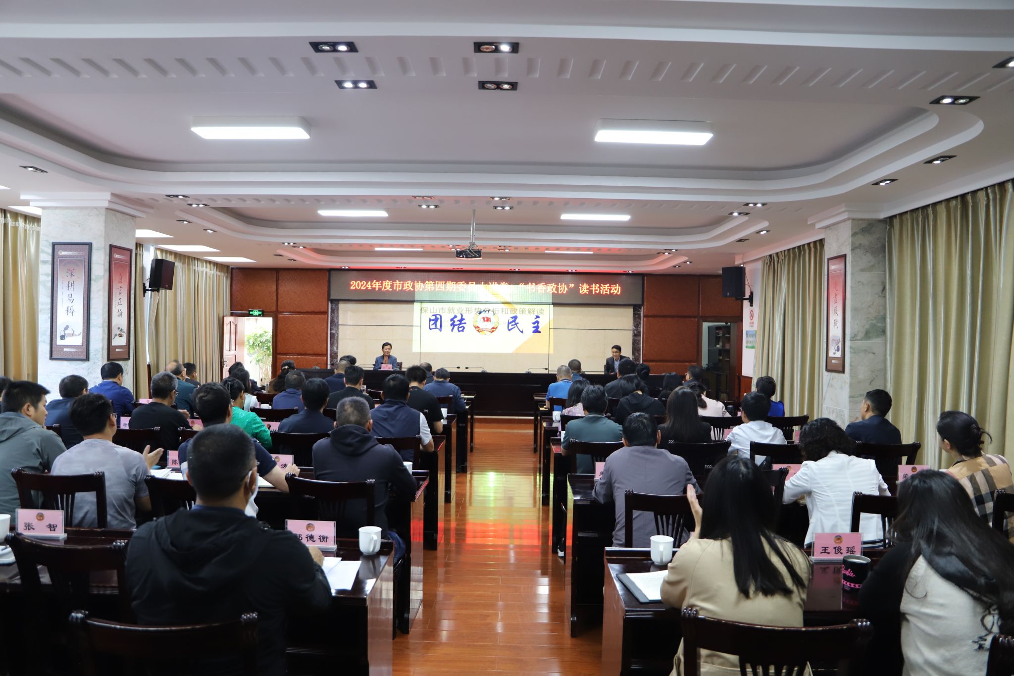 7月3日,市政协2024年第四期委员大讲堂+“书香政协”读书活动在市政协二楼会议室举办,市政协干部职工、各民主党派、工商联及部分政协委员60余人参加。