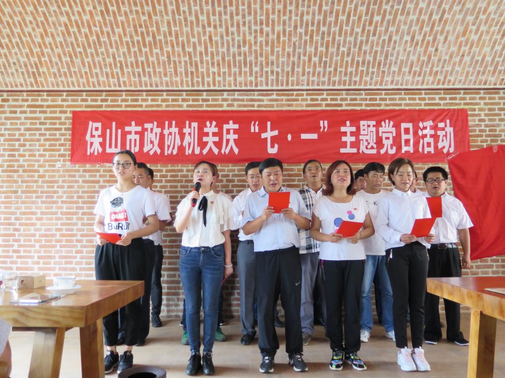 全体党员干部首先来到蒲缥镇梁金山故居,在讲解员的带领下,参观了陈列馆,深情追忆爱国侨领梁金山先生的光辉一生。随后,大家又深入高黎贡山管委会,调研了新寨万亩咖啡园和坝湾咖啡博物馆。在全体党员会议上,市政协领导为部分党员颁发了政治生日贺卡、表彰了优秀党务工作者和优秀共产党员、举行了党建知识问答竞赛和唱红歌、诗歌朗诵联欢活动。活动中,广大党员同志歌声嘹亮,激情飞扬,尽情抒发了对党的无限热爱,表达了对加快保山跨越发展,建设美好家园的豪情和决心。
