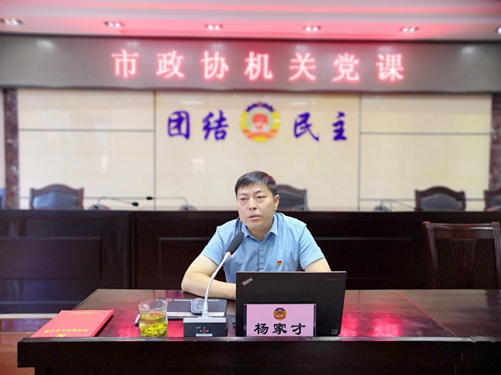 10月8日,保山市政协机关党组成员、党总支书记杨家才为机关全体党员同志上了一堂“讲奉献、有担当、做合格共产党员”的专题党课。
