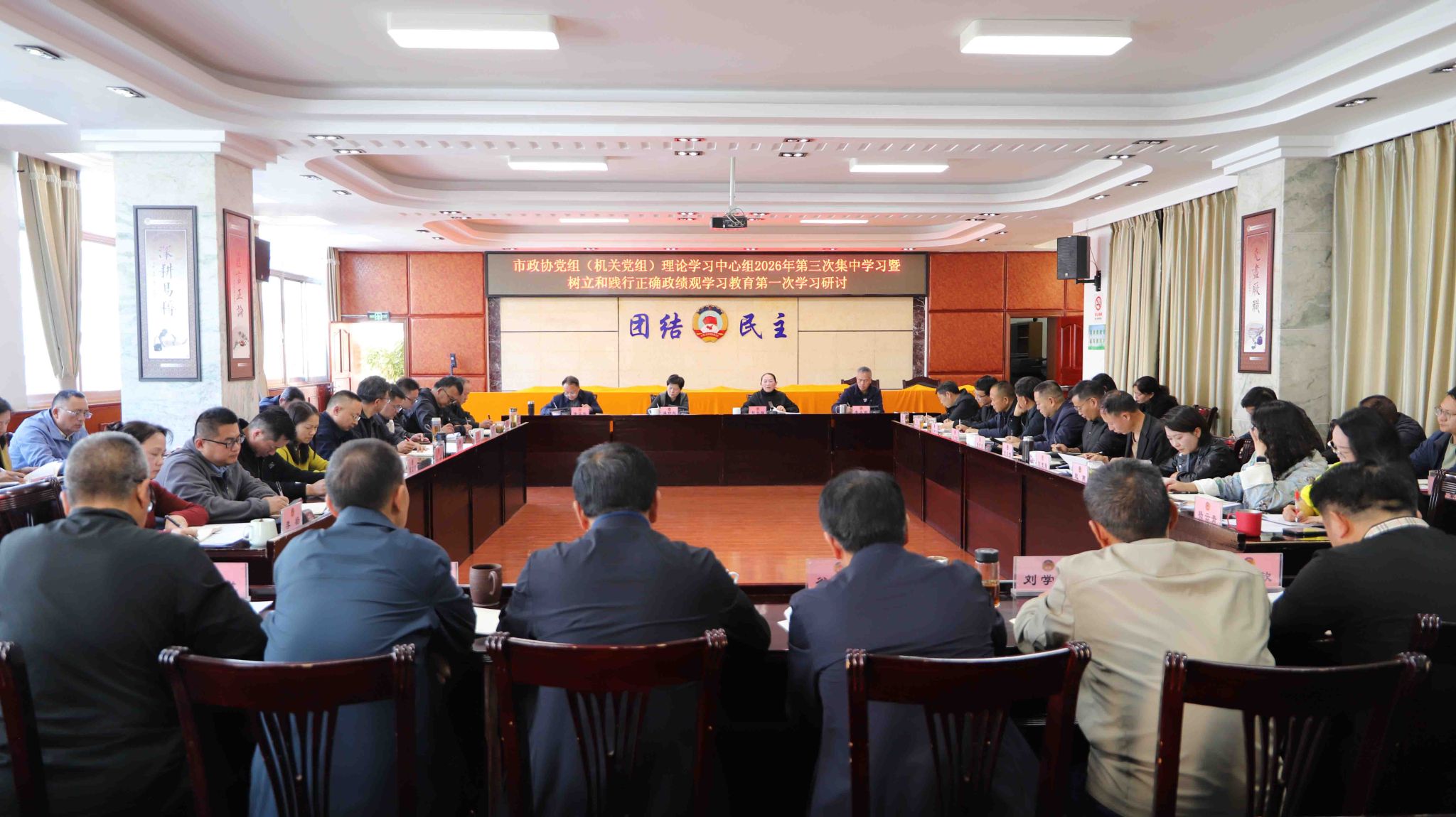 3月24日,市政协党组(机关党组)理论学习中心组举行2026年第三次集中学习暨树立和践行正确政绩观学习教育第一次学习研讨,深入学习贯彻习近平总书记关于树立和践行正确政绩观的重要论述,围绕认真扎实开展学习教育,把正确政绩观贯穿市政协履职全过程开展学习研讨。市政协主要负责同志主持会议并讲话。