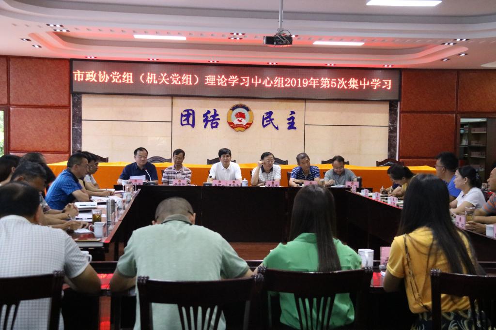 8月20日,市政协党组(机关党组)理论学习中心组以“深入学习领会习近平总书记关于脱贫攻坚的重要论述,全力推动全市决战脱贫攻坚,决胜全面建成小康社会,实现高质量跨越发展”为主题开展2019年第5次集中学习,教育引导领导干部切实把思想和行动统一到中央、省委和市委的要求上来,坚决打赢脱贫攻坚战。市政协党组书记、主席董礼书主持会议并讲话。彭小庆、苏格非、刘学喜作中心发言;杨青、李杨、陆松、董茹艳、李怡等5名同志作交流发言。市政协副主席苏正平、李宗华,秘书长潘正飚以及机关干部职工参加学习。