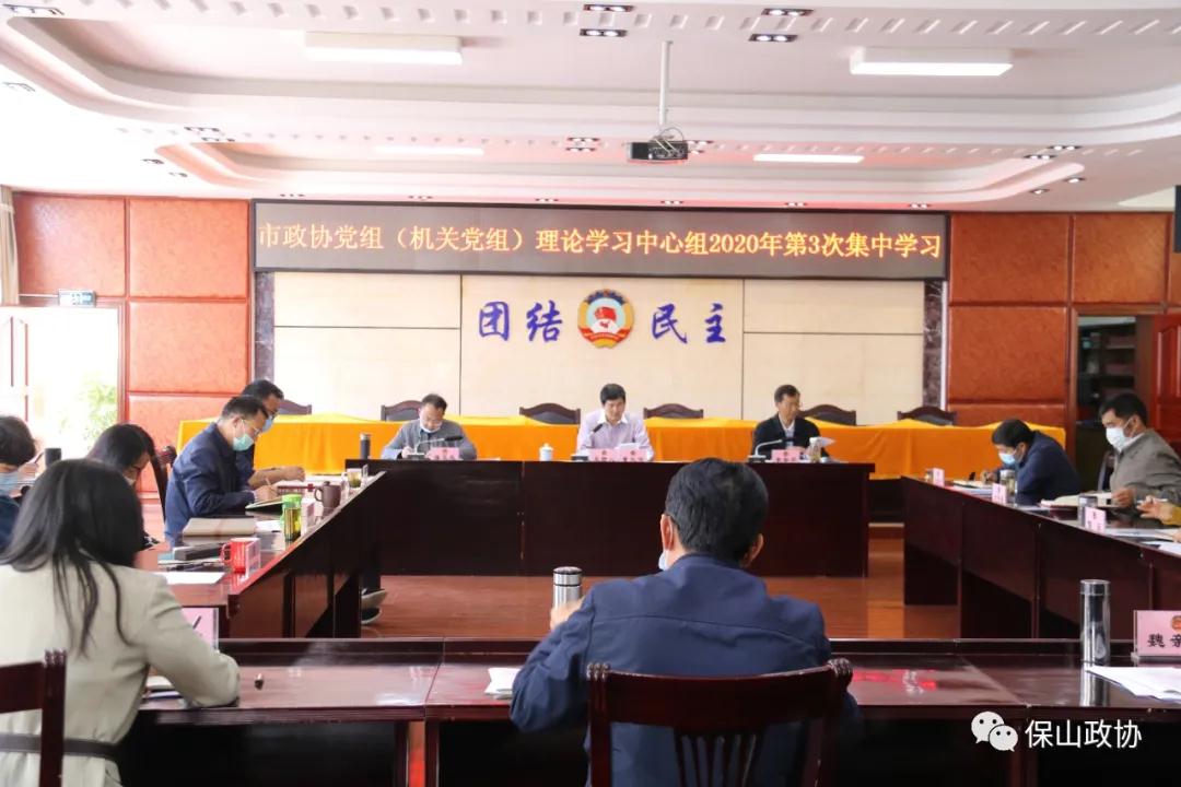4月10日,保山市政协党组(机关党组)理论学习中心组召开2020年第三次集中学习。市政协党组书记、主席董礼书主持会议并讲话。李宗华领学习近平总书记在统筹推进新冠肺炎疫情防控和经济社会发展工作部署会议上的讲话原文;潘正飚领学习近平总书记在决战决胜脱贫攻坚座谈会上的讲话原文。