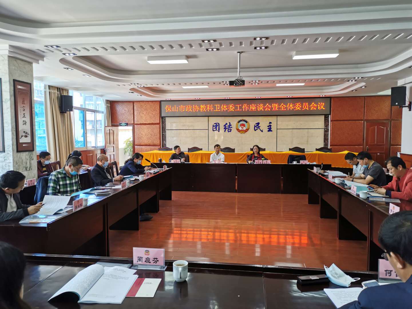 4月15日,市政协教科卫体委召开工作座谈会暨全体委员会议。市政协分管出席会议并讲话。会议通报了市政协教科卫体委2019年工作情况和2020年工作要点;传达学习了《2020年全省政协系统深入开展脱贫攻坚助推行动的工作意见》、通报市政协2020年“脱贫攻坚助推行动计划”;贯彻学习了省、市委《关于新时代加强和改进人民政协工作的实施意见》、保山市政协《提案规定和提案办理协商实施办法》;开展了2020年委员社情民意信息征集培训并安排部署相关工作。