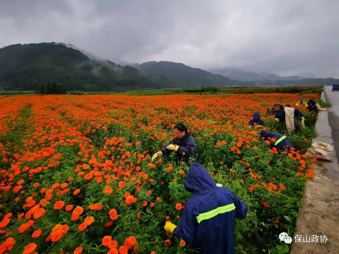 为认真贯彻落实“六稳六保”,巩固脱贫攻坚成果。近日,腾冲市政协机关组织30多名干部职工到界头镇顺河社区、曲石镇清河社区义务帮助农户采摘万寿菊,帮助农户解决万寿菊采摘高峰期劳动力不足的问题。