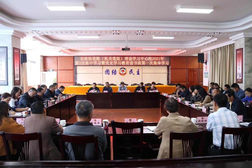 4月8日,市政协党组(机关党组)理论学习中心组开展2021年第3次集中学习暨党史学习教育读书班第一次集体学习,深入学习领会习近平总书记在党史学习教育动员大会上的重要讲话精神。市政协党组书记、主席董礼书主持并讲话,副主席李宗华、彭小庆、温仕红,秘书长潘正飚参加会议。