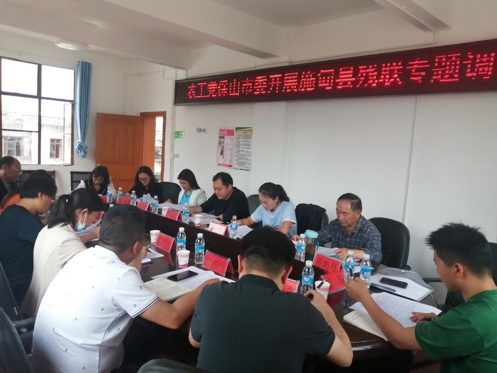 调研组首先组织召开了由市扶贫办、市民政局、市农业农村局等相关部门参加的座谈会议,了解掌握该项工作基本情况。随后深入施甸县、昌宁县、隆阳区等,先后组织召开专题座谈会议5场次,县(区)相关单位、部分乡镇和村组干部、残疾人工作联络员、残疾人代表参加了座谈。调研组还实地走访残疾人创业典型代表3人,走访施甸县万兴乡、昌宁县兰山社区、隆阳区官坡村等地残疾困难家庭11户,详细了解基层相关工作情况及农村贫困残疾群众生产、生活状况,综合评估该群体返贫风险点,并对他们进一步改善家庭生活水平、增加经济收入等提出建议。保山安利医院康复科医生还对走访对象进行了家庭康复护理指导。