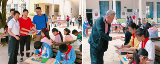参加活动的盟员老师们在耐心细致地教授同学们绘画、涂色的同时,不忘提醒同学们要保持正确的坐姿,保护好视力。比赛结束后,经过老师们的专业评审,最终从产生的33幅优秀作品中,评选出一等奖5名、二等奖7名、三等奖9名和优秀奖12名。民盟保山市委会、中共隆阳区委统战部、丙麻乡党委政府、丙麻乡中心学校领导为小画家们送上奖品、送上祝福,鼓励他们好好学习,健康成长。