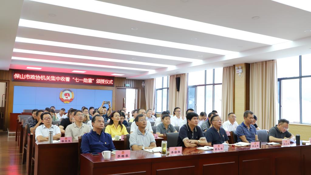 6月29日上午,保山市政协机关组织集中收看了庆祝中国共产党成立100周年“七一勋章”颁授仪式的全场直播。市政协党组书记、主席董礼书,副主席苏正平、李宗华、彭小庆、苏格非,秘书长潘正飚出席,市政协各委室干部职工参加了收看活动。
