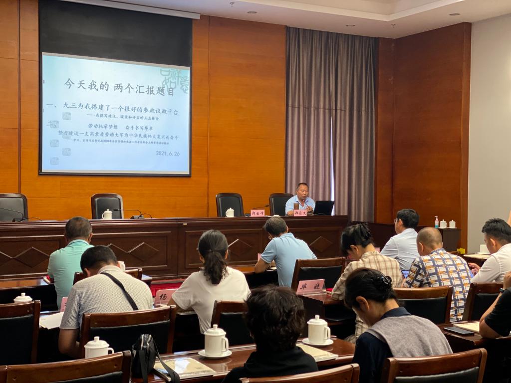宣讲会上,全国五一劳动奖章、全国先进工作者获得者,“云南九三楷模”郑家文以《九三为我搭建了参政议政的平台》为主题,结合他参加全国先进工作者颁奖大会的感受,为广大社员传达了习近平总书记在全国劳模和先进工作者颁奖大会上的重要讲话精神,同时,用朴实的语言、真挚的情感和鲜活的事例讲述了自己参政议政的工作经历、心路历程和平凡工作岗位上的奋斗故事,分享了他参政议政33年来的五个体会:“围绕中心,与时俱进”“大处着眼,小处着手”“深入调研,提高质量”“既有看法,也有办法”“体现特色,打造精品”。