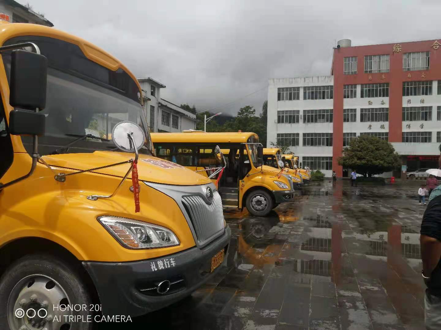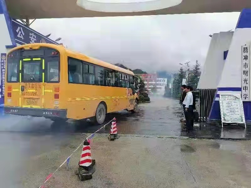 明光镇位于云南边境县的腾冲县城北部,国土面积731平方公里,辖9个社区171个村民小组,40928人,明光中学是镇内唯一的一所中学,位于明光镇东营村石桩坝,距县城73公里,距中缅边境口岸20多公里,现有在校学生1647人,教职工111人,由于特殊的地理位置,又加之群众居住分散,每个星期的学生上下学时,大都由50岁60岁的老人或家长纷纷出动各种车辆接送,造成往返车辆拥堵等,学校交通压力不小,安全隐患非常大,当李明金看到这一暮暮时,心情非常沉重,最终,下决心拿出200万元资金购买5辆校车无偿捐赠给明光中学,每年车辆运行费用预算100万左右的资金,15年共1500万元都由公司负责全支付。