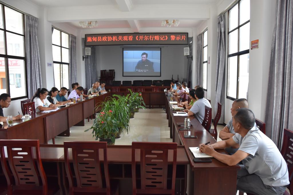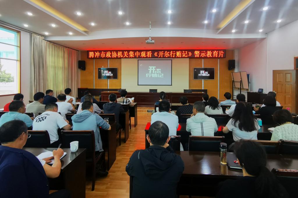 8月9日,施甸县、腾冲市政协组织干部职工集中收看《开尔行贿记》反腐警示专题片,进一步提高干部职工自重、自省、自警、自励的意识。