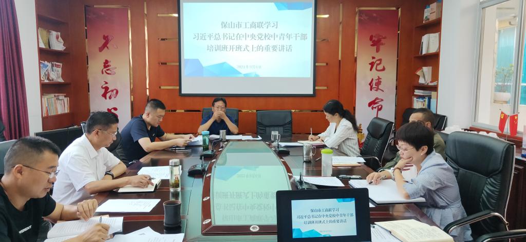 为贯彻落实“第一议题”要求,深入开展党史学习教育活动,9月6日,市工商联组织全体干部职工学习贯彻习近平总书记在中央党校中青年干部培训班开班式上的重要讲话。