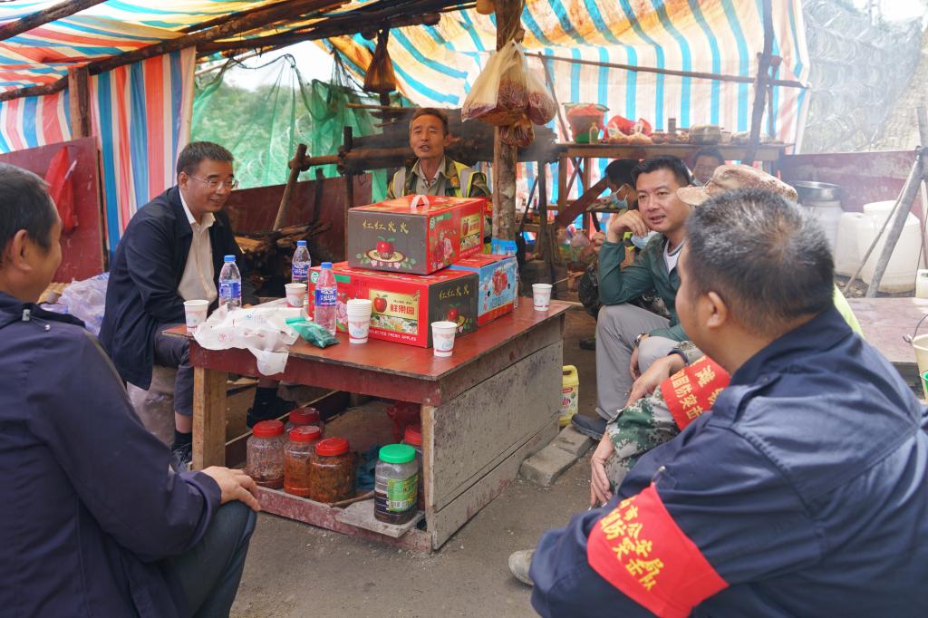 杨存宝一行先后来到下姐妹娅口至野猪滚塘坡的几个值勤点慰问了边境值守人员,向他们表达了敬意,为值守人员送上水果、猪肉等慰问物资。在现场与一线人员亲切交谈,了解各防控点生活条件、工作开展情况及实际困难和需要。并与大家一起研究解决存在的问题困难。