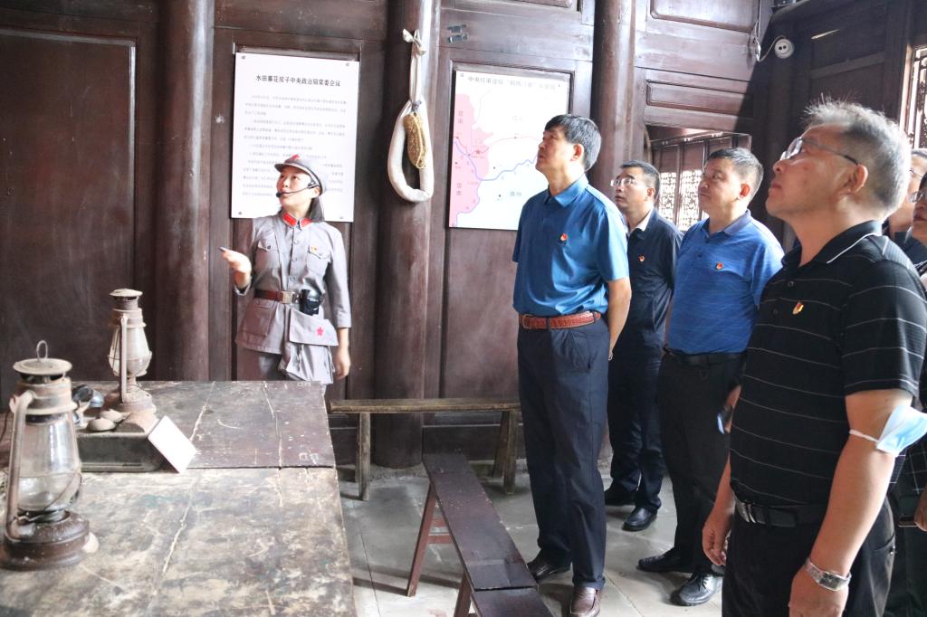 董礼书一行来到扎西镇大河滩庄子上中央政治局会议旧址,进一步体验红军长征精神, 在山间崎岖的小路上,沿着红军革命的印迹,顺着红色的方向,重走长征路。随后,到扎西红军广场瞻仰扎西红军烈士陵园,向革命先烈敬献花篮,重温入党誓词。在扎西会议纪念馆,大家认真聆听现场教学老师关于“危急关头·集结扎西”“扎西会议·实现转折”“红旗漫卷·走向胜利”“三边转战·铁血忠魂”4个展区内容的讲解,通过一幅幅珍贵图片、一件件历史文物、一个个红色故事,共同追忆红军长征峥嵘岁月,深切缅怀革命先烈。同时,到罗炳辉将军纪念馆和江西会馆中央政治局扩大会议旧址、红军街开展现场教学。