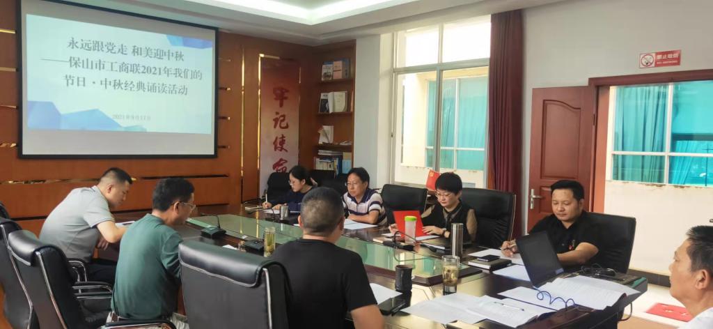9月17日,保山市工商联举办“永远跟党走·和美迎中秋”主题活动,以诵读红色经典,讲述红色故事,诵读中秋经典诗词等形式,宣传党的奋斗业绩、传承党的精神谱系,让全体干部职工“感党恩、听党话、跟党走”,过爱党中秋。