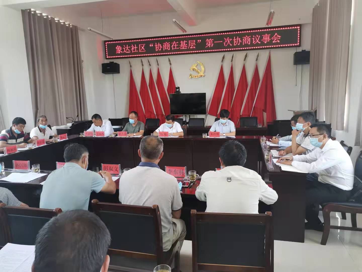 会议由象达社区党总支书记董品强主持,会议严格按照“协商在基层”协商议事工作要求进行,会上出席和列席会议人员就协商主题、协商内容进行了充分发言,围绕协商原因、实现目标作了深入细致的沟通,工作效果明显,协商最终形成了共识。