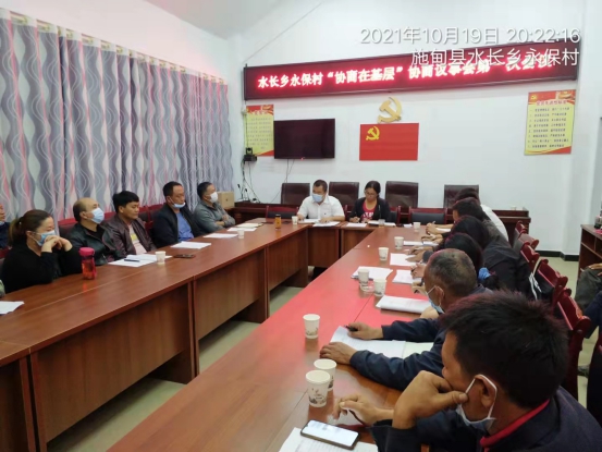 10月19日,施甸县水长乡永保村召开“协商在基层”议事会第一次会议,县政协“协商在基层”的挂钩联系领导、乡政协联络小组到会指导,永保村“协商在基层”协商议事会议成员、村民代表、利益方、相关职能部门人员共24人参加会议。会议围绕永保村集镇和搬迁点垃圾清运问题展开协商讨论。