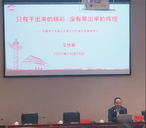 会议邀请中共保山市委党校常务副校长艾怀森教授做专题辅导。艾怀森以“只有干出来的精彩,没有等出来的辉煌”为题,把保山过去五年取得的成绩经验、面临的机遇挑战,未来五年的发展方向、目标及重点,以及如何加强党的建设,贯彻落实会议精神用通俗易懂的语言文字做了认真细致的讲解。