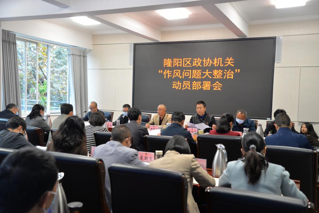 11月15日,隆阳区政协召开“作风问题大整治”动员部署会议。区政协全体干部职工和区纪委监委派驻纪检监察组组长参加会议。区政协党组副书记、副主席罗向前同志主持,区政协党组书记、主席杨赵心同志作动员讲话。