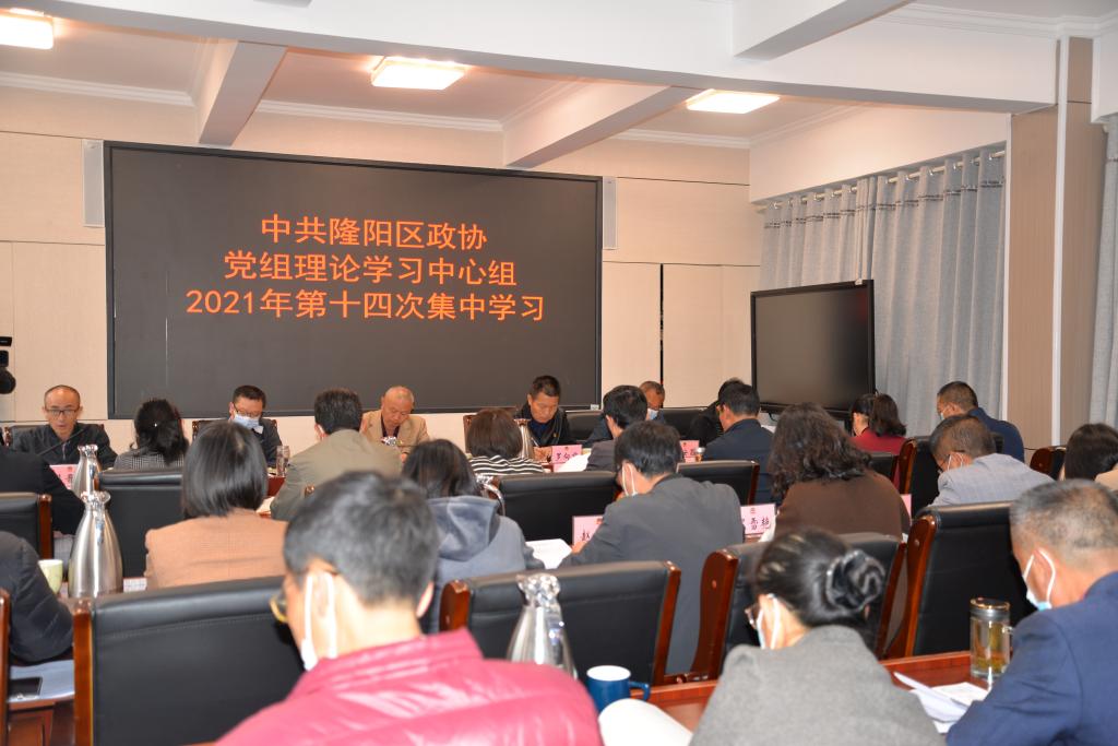 近日,隆阳区政协党组举行理论学习中心组2021年第十四次集中学习,专题学习党的十九届六中全会精神。会议由区政协党组书记、主席杨赵心主持,区政协全体干部职工参加学习。