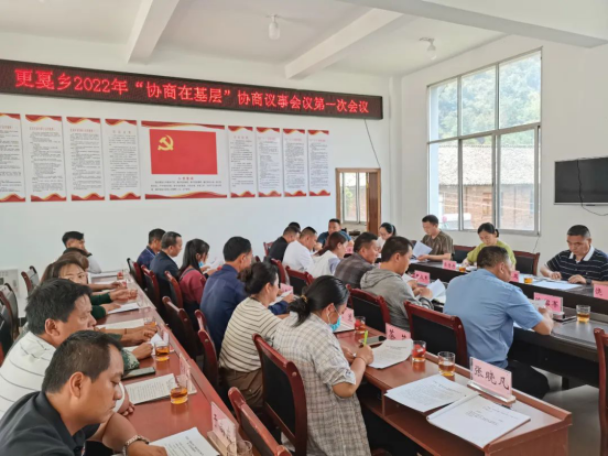 4月29日,昌宁县更戛乡就“党群合力扮靓更戛颜值”召开了2022年“协商在基层”协商议事会议第一次会议。县政协领导、乡协商议事会成员、部分政协委员、商户代表、党员群众代表等30人参会。
