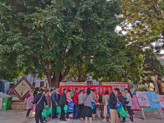 机关志愿者在隆阳区新时代文明实践中心耐心细致地向过往市民讲解《保山市民文明手册》“预防青少年犯罪法”“爱国卫生行动”等知识,发放宣传学习资料共计1500余份。