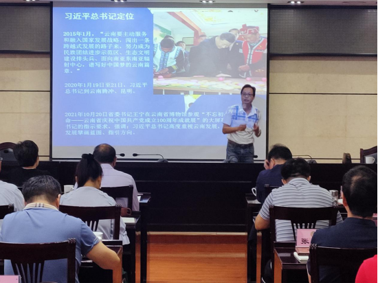 此次集中学习邀请了中共云南省委党校张雷军教授作专题辅导。张雷军结合理论和工作实际,以“ 习近平总书记关于民族工作的重要论述——云南民族团结进步示范区建设”为题,从“ 定位:云南民族团结进步示范区为什么 ”“聚焦:云南民族团结进步示范区是什么 ”“ 建设:云南民族团结进步示范区怎么做 ”三个方面进行了深刻解读。辅导内容主题鲜明、深入浅出、符合实际,具有很强的理论性、针对性和指导性。此次辅导进一步深化了参学人员对民族团结进步示范区建设重要性的认识,提高了参学人员贯彻执行党的民族政策、国家民族法律法规的能力和水平,切实增强了大家参与民族团结进步示范创建的责任感和使命感。