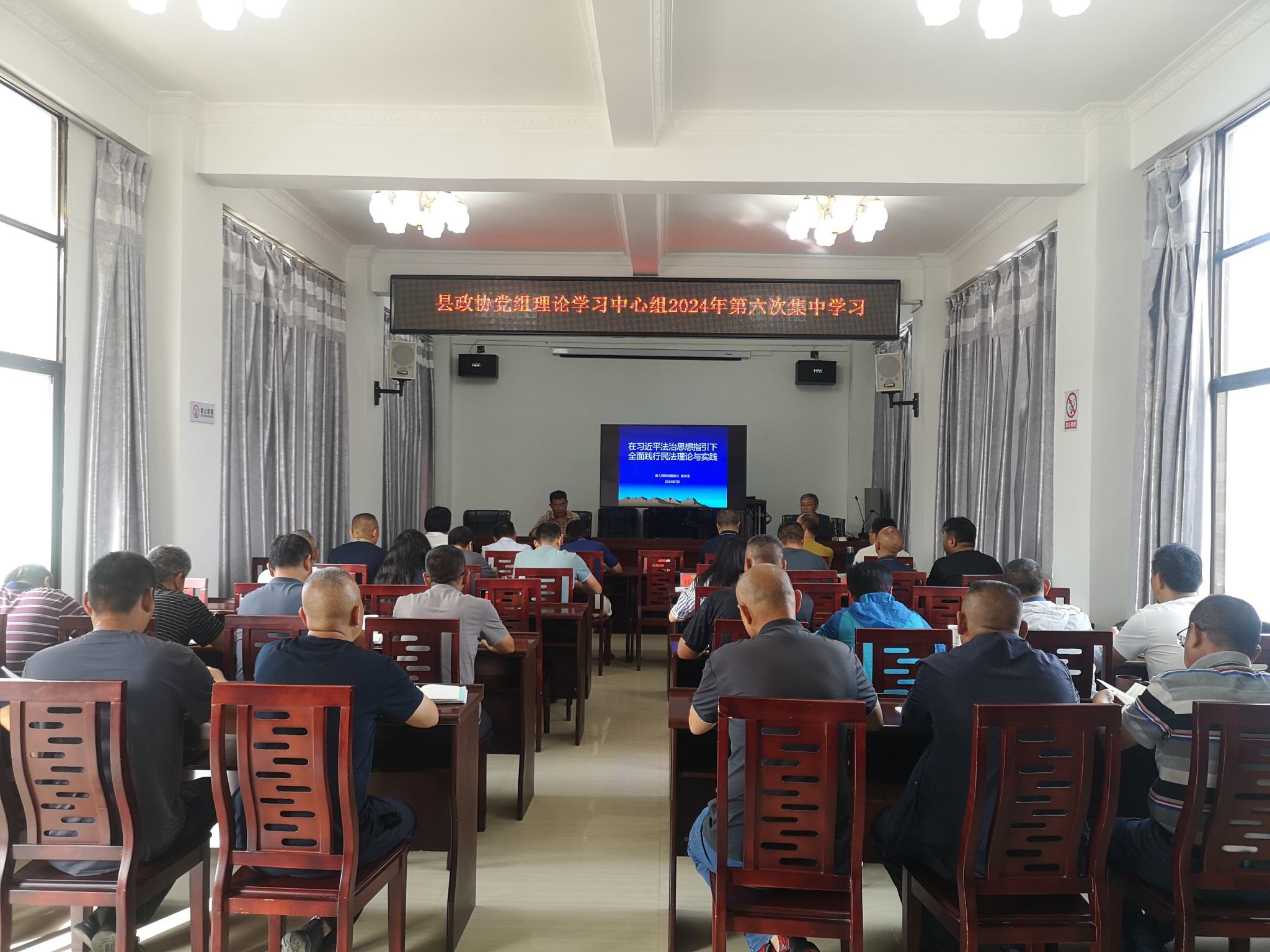 7月8日,施甸县政协党组理论学习中心组举行2024年第六次集中学习,深入学习领会习近平法治思想。