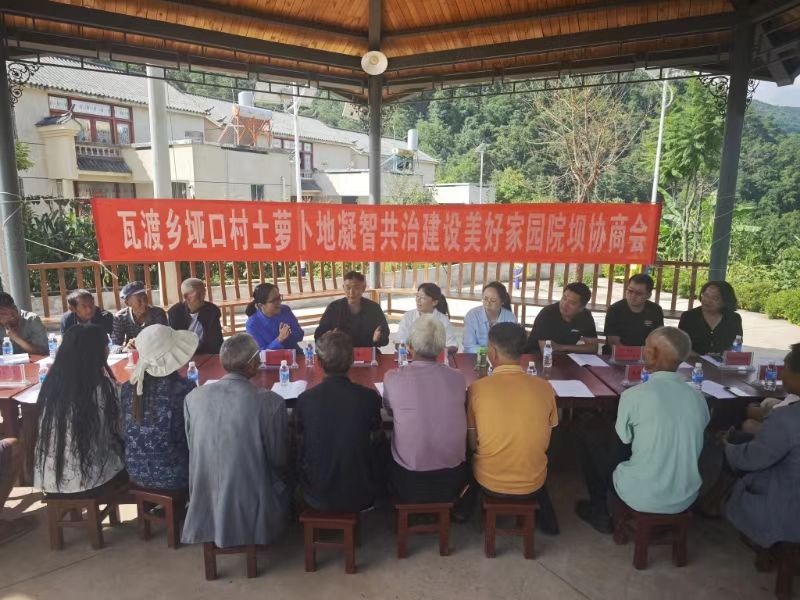 9月24日,隆阳区瓦渡乡在垭口村土萝卜地易地扶贫搬迁安置点,召开以“凝智共治,建设美好家园”为主题的院坝协商议事会议。