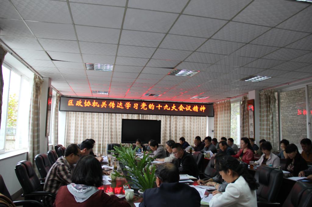 10月30日,隆阳区政协党组开展理论学习中心组第八次集中学习,专题传达学习党的十九大精神。区政协党组书记、主席杜明龙主席主持会议并讲话,党组副书记、副主席宋如宽原文传达学习《党的十九大精神传达提纲》,全体干部职工参加学习。