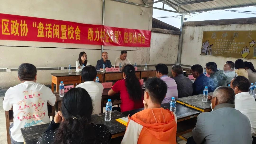 近日,隆阳区政协以“盘活闲置校舍 助力村企发展”为主题,在蒲缥镇王头寨村举行院坝协商议事会议,为实现资源盘活,解决企业困难,实现村级集体经济增收,共同出谋划策。