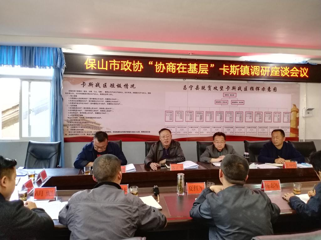 调研组先后到昌宁县卡斯镇、田园镇召开座谈会,听取了昌宁县政协有关工作情况汇报,并与试点乡镇领导、村(社区)负责人、委员代表进行深入交流,认真听取各方面意见,共同探讨做好“协商在基层”试点工作的新思路。
