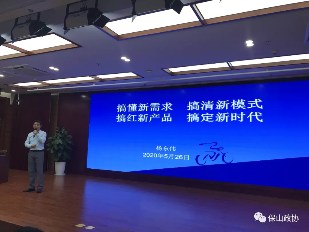 5月26日,在保山市工商联四届五次执委(常委)会上,保山市人民政府副市长杨东伟为广大民营企业家作专题讲座。讲座首次以现场直播的方式与全市广大民营企业分享,现场及线上共有近1500人实时收听收看,引起热烈反响。