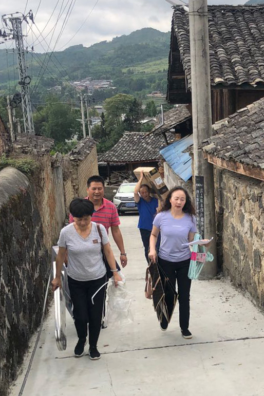 6月8日,腾冲市政协组织机关干部职工拉着电视、衣柜、橱柜、鞋架等爱心物资来到固东镇小甸、甸苴、罗坪、顺利、河头等社区,为困难家庭送上生活用品。