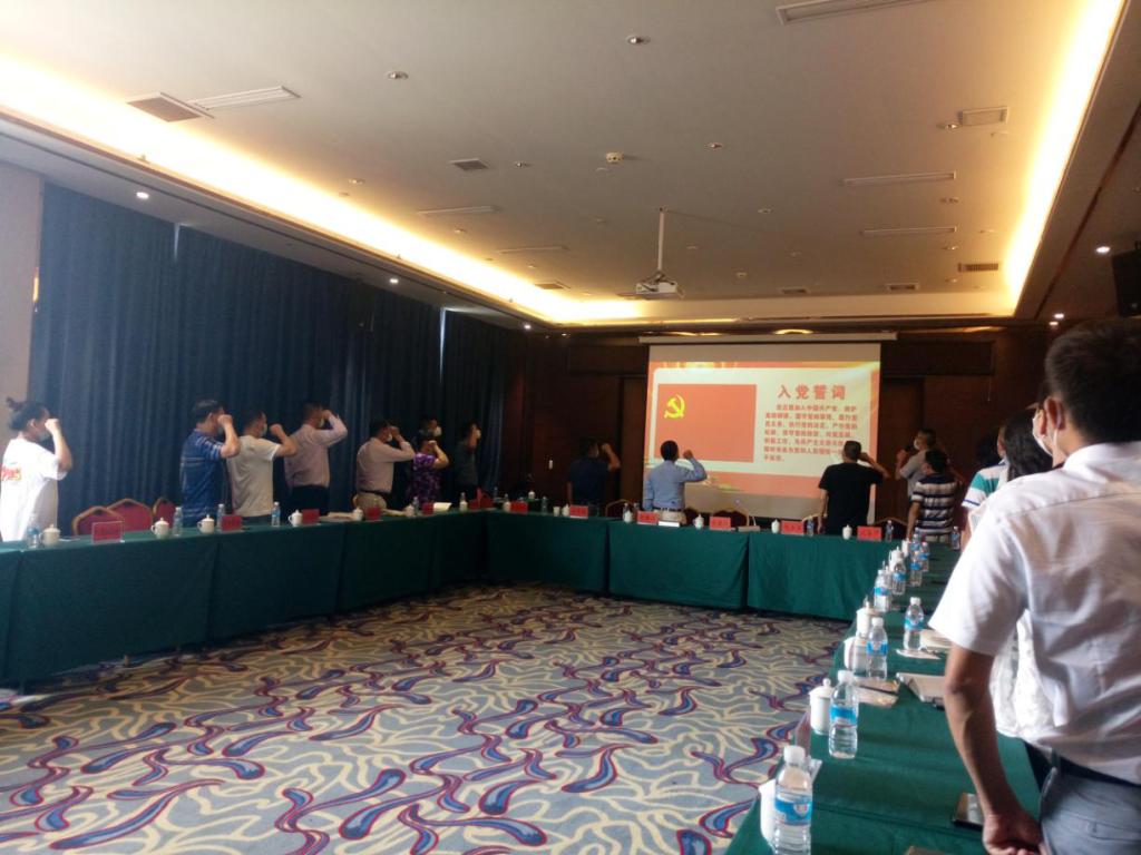 重温一次入党誓词。铭记初心、不忘使命,面对鲜红的党旗,全体党员庄严地举起右手,向党旗宣誓。
