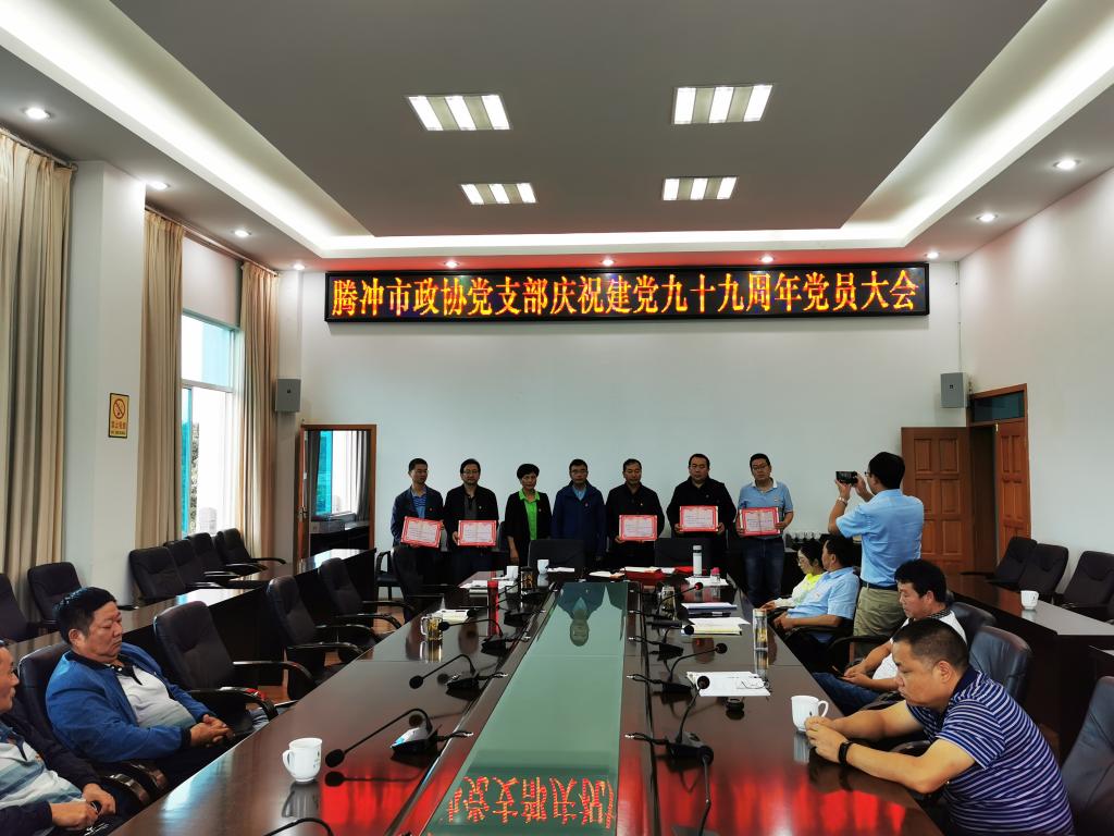 表彰好一批优秀党员。7月1日,腾冲市政协党支部召开党员大会庆祝建党九十九周年,会上全体党员重温了入党誓词,让大家守好初心,不忘承诺;对在2019年度表现优秀的十一名共产党员进行了表彰;结合“读原著·悟原理”开展了相关读书活动。