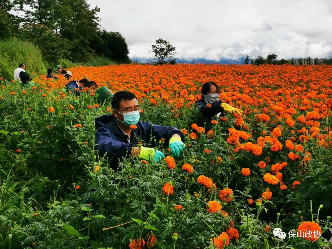 为认真贯彻落实“六稳六保”,巩固脱贫攻坚成果。近日,腾冲市政协机关组织30多名干部职工到界头镇顺河社区、曲石镇清河社区义务帮助农户采摘万寿菊,帮助农户解决万寿菊采摘高峰期劳动力不足的问题。