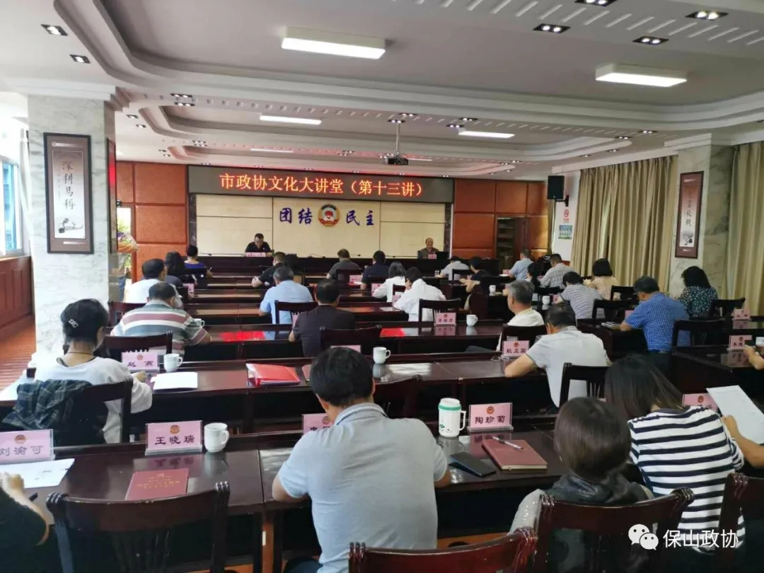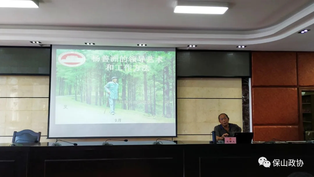 9月15日,保山市政协举办政协文化大讲堂第十三讲,邀请保山市委党校四级调研员、杨善洲干部教育学院特聘教授、保山市社会科学优秀专家庄朝义老师作“杨善洲的领导艺术和工作方法”专题辅导,旨在深切缅怀杨善洲老书记,进一步在机关掀起学习和弘扬杨善洲精神的热潮。市政协机关干部职工、市级各民主党派和市工商联部分领导共50余人聆听了讲座。