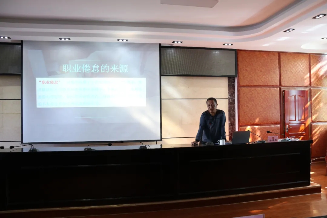 讲座主要围绕“什么是职业倦怠”“为何出现职业倦怠”“应对职业倦怠的方法”三个方面进行专题辅导,并从在平凡的岗位中找到工作的兴奋点,直面人生,做一个勇于承担责任的人;知足常乐,做一个主宰自身健康的人 ;爱岗敬业,做一个播撒人间关爱的人;勤学苦练,做一个胜任职业角色的人 ;自强不息,做一个不断自我完善的人等五个方面对职业倦怠产生的原因、应对的方法进行详细介绍。大家表示,通过聆听讲座,对走出职业倦怠困境、提高自我情绪调控能力和做好本职工作帮助极大。