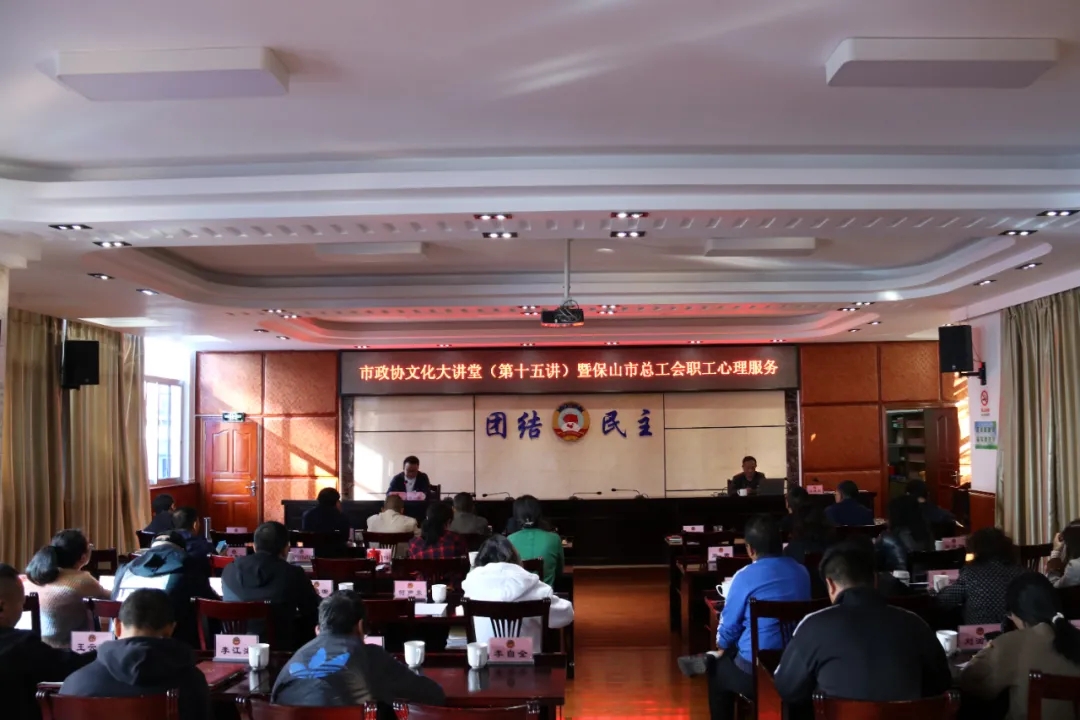 11月19日,市政协举办文化大讲堂(第十五讲)暨职工心理关爱服务辅导活动,邀请保山市心理卫生协会副会长、保山技师学院高级讲师苏德刚作主题为“职业倦怠应对”的专题讲座,市政协机关全体干部职工,市级各民主党派、市工商联等相关领导40余人参加学习。