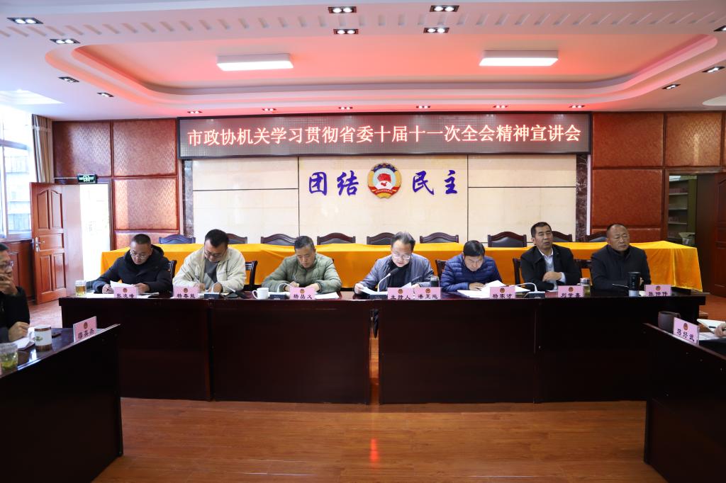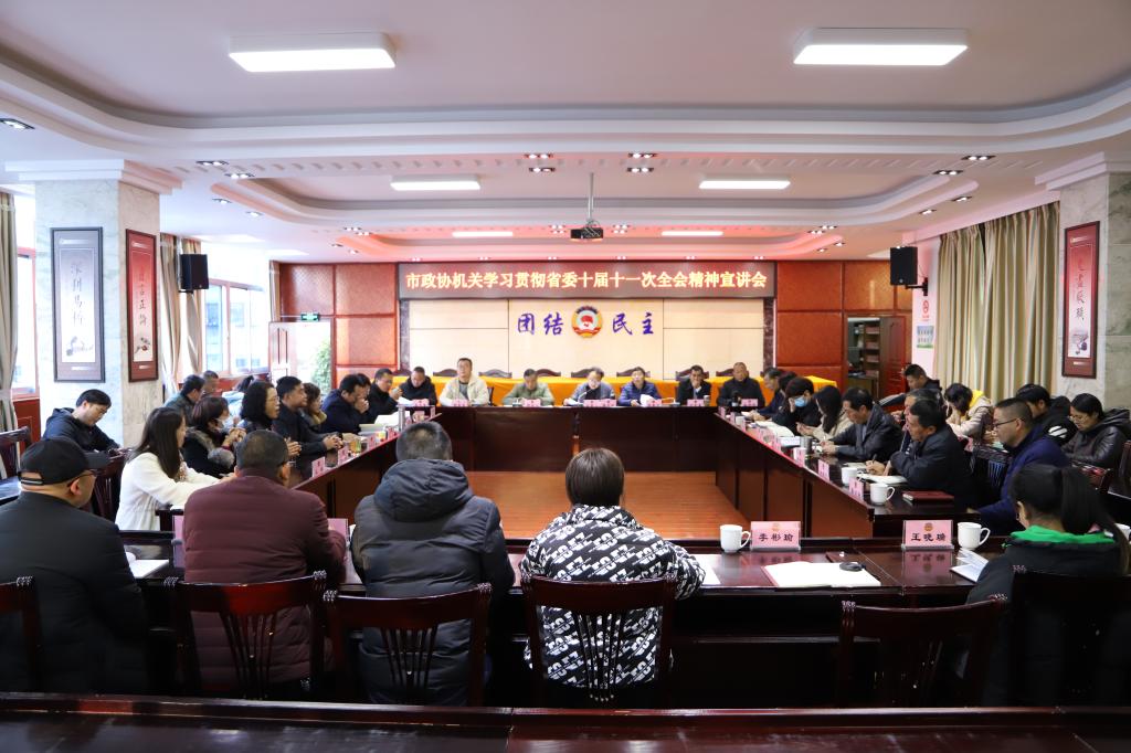 会议要求,“十四五”时期是乘势而上开启全面建设社会主义现代化国家新征程、向第二个百年奋斗目标进军的第一个五年。省委十届十一次全会清晰展望了云南到二〇三五年发展的远景目标,明确提出了“十四五”时期云南经济社会发展指导思想、主要目标、重点任务、重大举措,为云南开启全面建设社会主义现代化新征程指明了方向、提供了遵循、凝聚了力量。潘正飚指出,市政协机关要以高度的政治责任感和历史使命感,紧紧围绕云南高质量发展主题,把全会精神贯彻落实到机关工作的各个方面,紧扣学习主题,以组织党员委员学习活动为抓手,向广大党员委员广泛宣传好、解释好中央、省、市全会精神,营造浓厚学习氛围。同时,要通过理论中心组集中学习和“三会一课”强化机关干部职工对全会精神的学习和领会,对照全会要求,狠抓落实,切实把全会有关决策部署转化为具体行动,不断推动政协工作,以优异成绩向建党一百周年献礼。