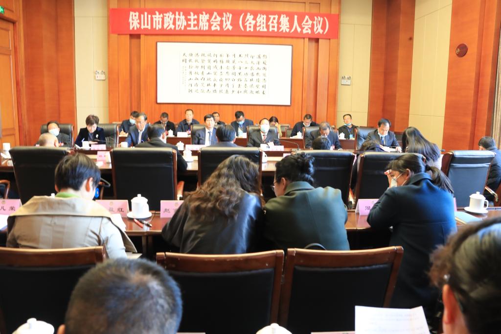 2月6日下午,政协保山市四届六次会议举行主席会议(各组召集人会议),听取各组讨论“一府两院”工作报告、规划纲要、计划和财政报告、《中国人民政治协商会议保山市第四届委员会常务委员会工作报告的决议》(草案)、《中国人民政治协商会议保山市第四届委员会常务委员会关于四届五次会议以来提案工作情况报告的决议》(草案)、《中国人民政治协商会议保山市第四届委员会第六次会议政治决议》(草案)情况汇报。