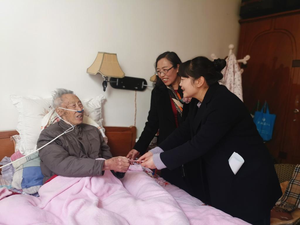 “你们来了,又来看我了,来来来,赶紧来床边坐......”,保山民建93岁的会员朱嘉瑞看见慰问组一行,非常高兴,赶紧让儿子扶他从床上坐起来。他颤颤巍巍地从枕头下面拿出200元钱递给黄小燕秘书长,“这个是今年的会费,我今年身体不太好,要赶紧把会费交掉呢”……朱嘉瑞说“我是1990年2月就加入的民建了,是保山较早加入民建的会员,到今年已经有31年了。每次你们来看我,我都很开心。今年我的心脏不好,已经住了两次院了,也不知道还能坚持多长时间,什么时间会走……”春季将至,民建保山市委主委赵燕蓉带领班子成员、机关专干和骨干会员分组开展春节慰问活动。当来到朱嘉瑞家中时,出现了上述感人的一幕。