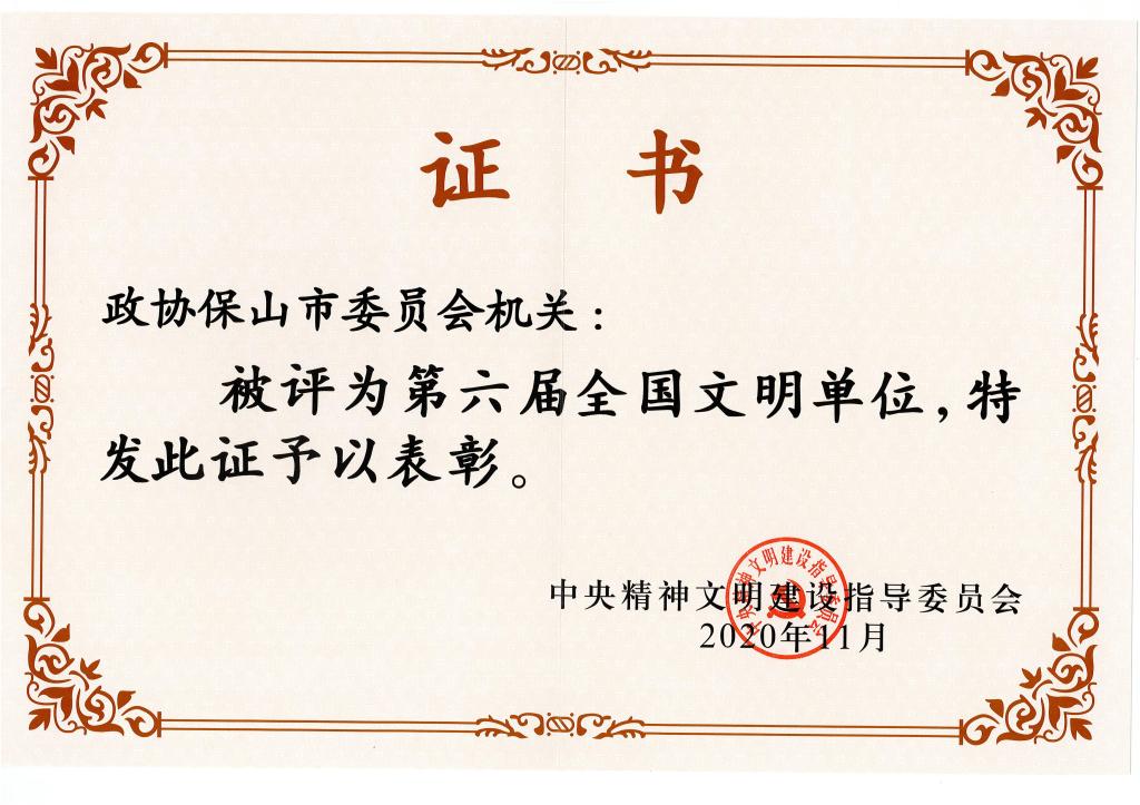 2月18-19日,保山市委召开全市宣传思想工作会议,会议表彰了荣获全国全省精神文明建设荣誉的先进集体,保山市政协机关榜上有名——被中央精神文明建设指导委员会评为第六届全国文明单位。